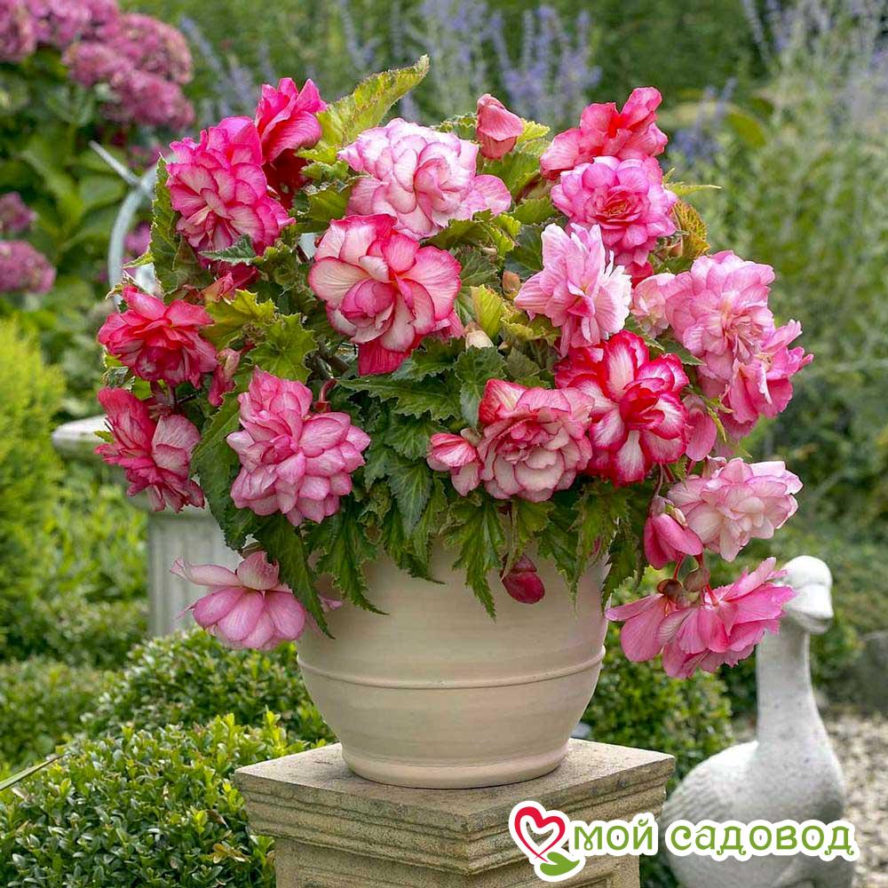 Бегония Пикоти Каскад Флоренс многолетнее клубневое растение для балконного, комнатного выращивания, вертикального озеленения и сложно-сборных клумб. Высотой до 25 см, побеги поникающие, длиной до 30 см. Цветки крупные, лососевого оттенка с малиновой каймой по краю волнистых лепестков. При выращивании на слегка затененных участках бутоны гораздо крупнее, чем на солнце. Бегония любит рыхлый питательный грунт со слабокислой реакцией. Оптимальная схема посадки 20х30 см.Сделайте дренаж. Поливайте регулярно и умеренно. Раз в месяц подкармливайте минеральным удобрением. В период покоя обеспечьте прохладную зимовку. Чтобы растения зацвели к началу лета, посев на рассаду делают в январе-марте. Заделка не требуется. Просто равномерно распределите по рыхлому торфяному субстрату.