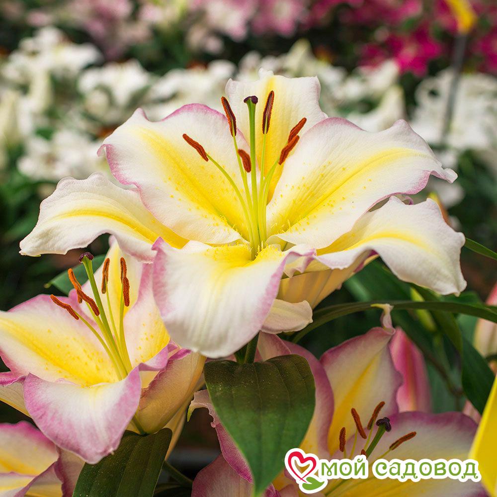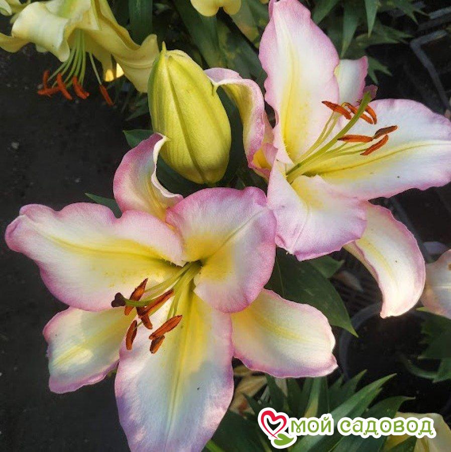 Зимостойкий цветок с необычным сочетанием тонов. Это высокое растение, до 120 см в длину и популярное для украшения клумб и выращивания под срезку. Цветок лёгок в уходе, кусты отлично переносят жару и морозы, легко остаются зимовать в открытом грунте, под укрытием. В середине и в конце лета начинают распускаться бутоны – они достигают 18-20 см. Цветы сразу привлекают внимание необычным окрасом и ярким ароматом. Они белые, с волнистой малиновой каймой и желтой продольной полосой в центре. Посадка лилии: Глубина посадки лилии зависит от почвы. Если почва легкая – можно углубить на 12-13 см, что составляет 3-4 диаметра луковицы. Если же почва глинистая или тяжелая, достаточно двух диаметров, глубина лунки не более 5 см. В выкопанную ямку насыпьте слой песка, установите луковицу донышком на песок, присыпьте сверху остатками грунта, сверху замульчируйте. Уход за лилией: Пышных бутонов у лилий можно добиться, соблюдая обычные правила ухода: в первый год лилиям не нужна весенняя подкормка, удобрения вносятся разово за сезон, после цветения. Но это лишь в том случае, если перед посадкой вносилось удобрение. Перед началом цветения высокорослые сорта рекомендуется подвязать. После цветения засохшие бутоны удаляют. Полив умеренный: лучше не долить, чем перелить. Если цветок начал чахнуть и имеются подозрения на перелив – смешайте по столовой ложке речного песка и древесной золы, высыпьте под цветок и не поливайте ближайшую неделю. Полив лилии важно проводить под корень, старайтесь исключить попадание воды на листья, это провоцирует ожоги на солнце и распространение грибковых заболеваний.