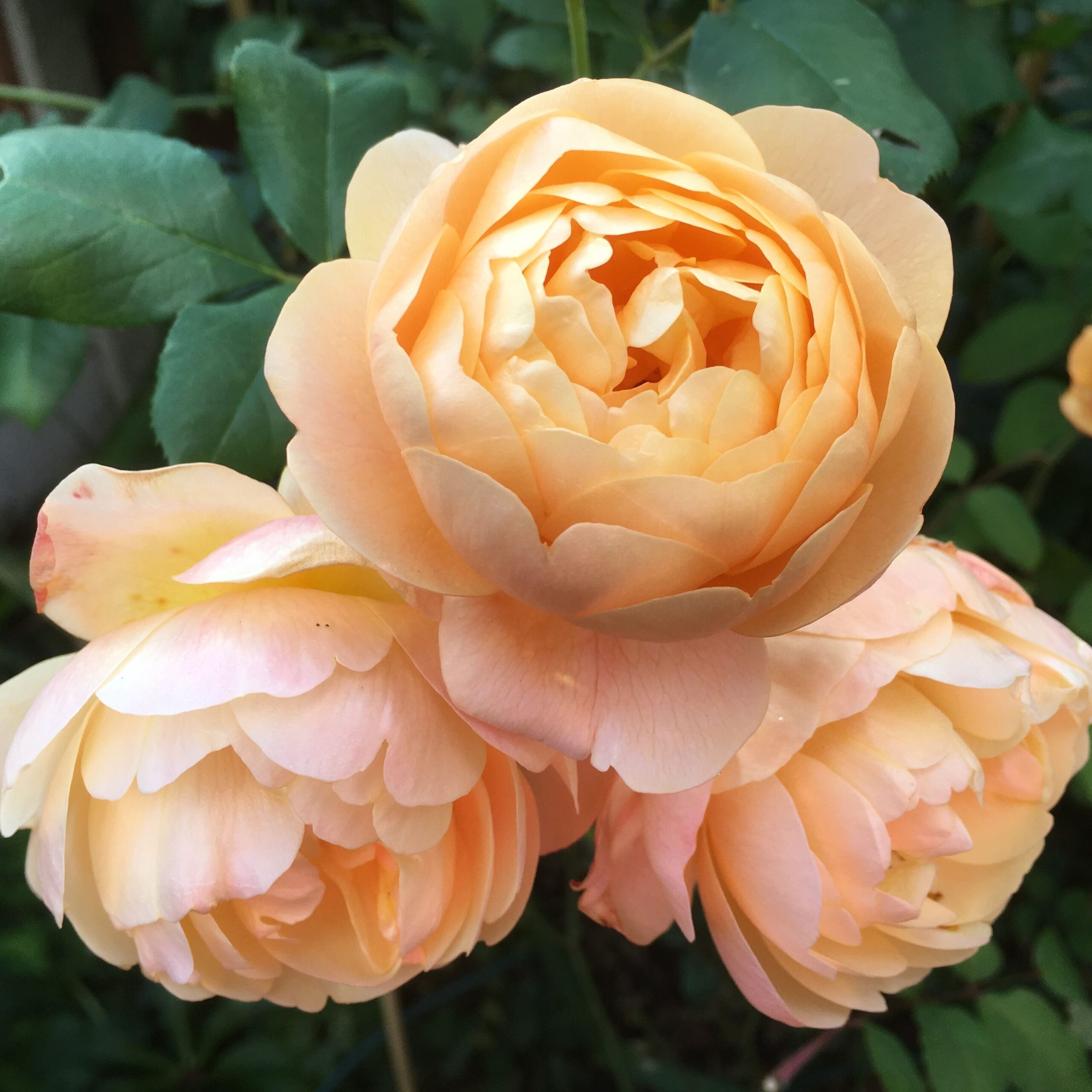 Окраска цветков интересная – матовая персиково-абрикосовая. Бутоны красно-оранжевые, по мере роспуска цветы светлеют до персикового. Старые цветки становятся еще более светлыми, но большого контраста нет. Куст в цвету будет выглядеть достаточно ровным. Есть фруктово-чайный аромат средней силы.